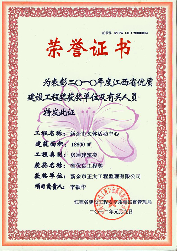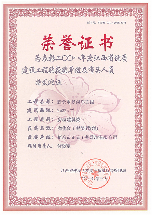 新余市正大工程監(jiān)理有限公司依托新余市建筑設(shè)計(jì)院,于1995年11月成立,是新余市開展監(jiān)理工作最早的監(jiān)理單位,本公司具有建設(shè)部核發(fā)的房屋建筑工程甲級(jí)監(jiān)理資質(zhì)、市政公用工程乙級(jí)監(jiān)理資質(zhì)、國(guó)家人防辦核發(fā)的人防工程監(jiān)理乙級(jí)資質(zhì)。我公司始終堅(jiān)持“客戶至上、質(zhì)量第一、信守合同”的經(jīng)營(yíng)理念;追求“為社會(huì)創(chuàng)造價(jià)值、為業(yè)主創(chuàng)造效益、為自身謀求發(fā)展”的經(jīng)營(yíng)宗旨;遵循“守法、誠(chéng)信、公正、科學(xué)、優(yōu)質(zhì)、高效”的工作原則,以雄厚的技術(shù)力量、完善的管理制度、豐富的監(jiān)理經(jīng)驗(yàn)、良好的企業(yè)信譽(yù)迅速成為我市監(jiān)理行業(yè)的一支新銳力量!